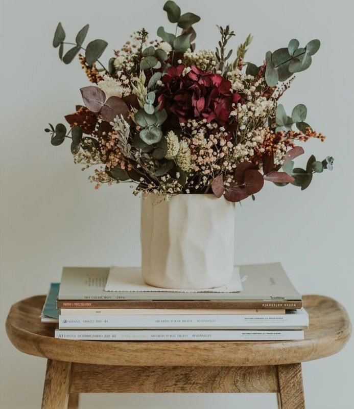 Elaborada con delicada textura de flores secas, esta cesta destaca por su acabado natural y auténtico. Cada detalle está pensado para transmitir calidez y exclusividad, ideal para quienes buscan decorar con elementos únicos.