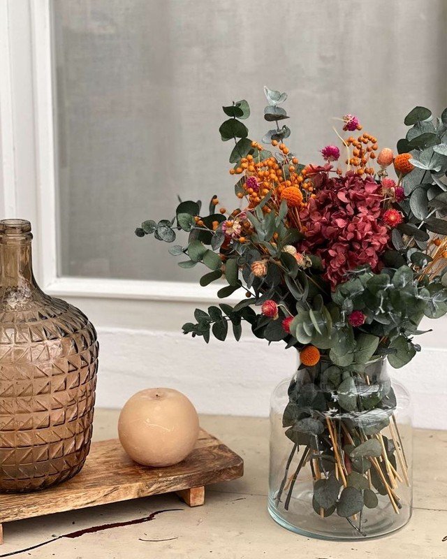 Adornada con una textura detallada de flores secas, esta cesta ofrece un acabado natural que complementa cualquier decoración, desde ambientes clásicos hasta contemporáneos. Su diseño aporta un aura de tranquilidad y refinamiento.