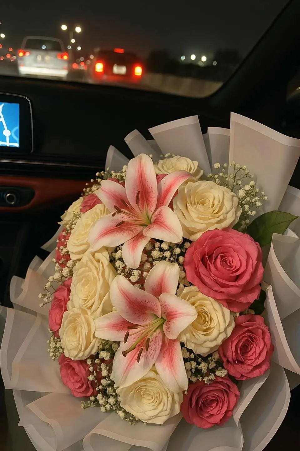 Nota del artista: Para garantizar frescura, las flores pueden variar según la temporada, manteniendo siempre la esencia y belleza del diseño.