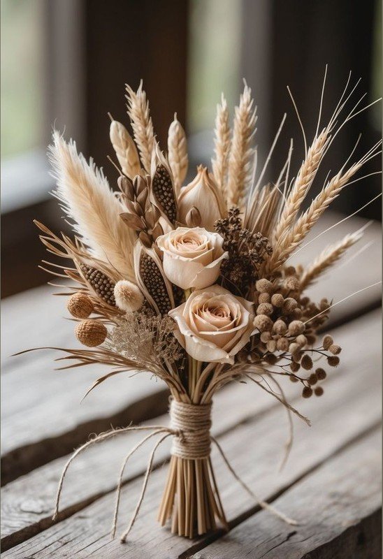 Looking for the perfect touch of sophistication? Este ramo de estilo minimalista combina tonos oliva y salvia para un acabado premium que grita buen gusto. Su textura de flores secas añade una vibra orgánica que es simplemente irresistible.